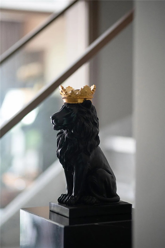黑色的狮子立于家中,展现了现代人的精神,头戴金色皇冠更显高贵。