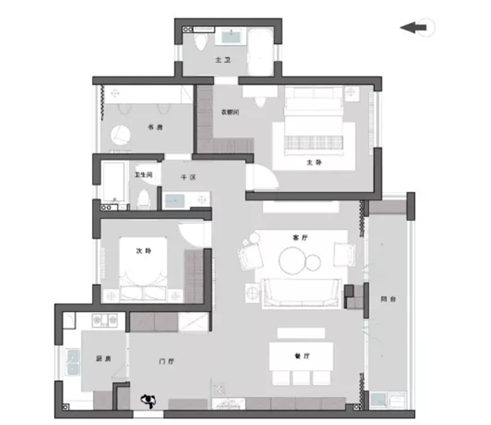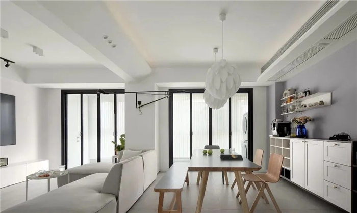 今天推荐的是121㎡简约风格装修,两个年轻人走在一起,一个理性一个感性,对于未来生活以及新家的畅想,可以有油盐酱醋茶的琐碎,也要有诗和远方。