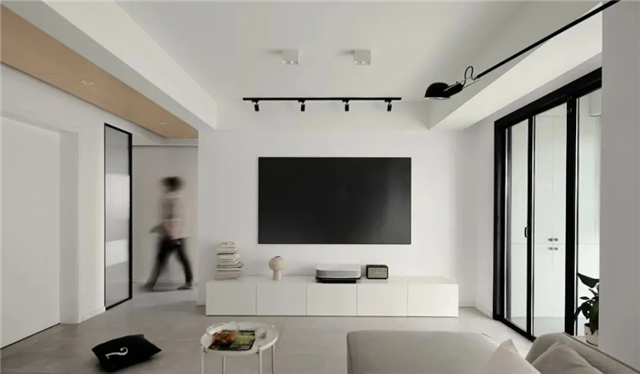 ▲ 客厅纳入阳台,地面通铺800*1600的超大规格砖,搭配极简顶面设计彰显大气