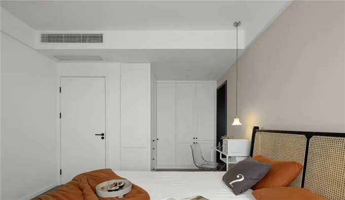 ▲ 床侧做了置顶衣柜,设计一列开放格增加置物功能