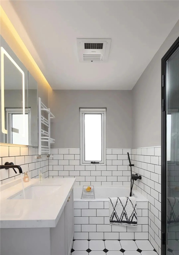▲ 主卫通铺白色石纹砖,马桶背景采用花砖铺贴