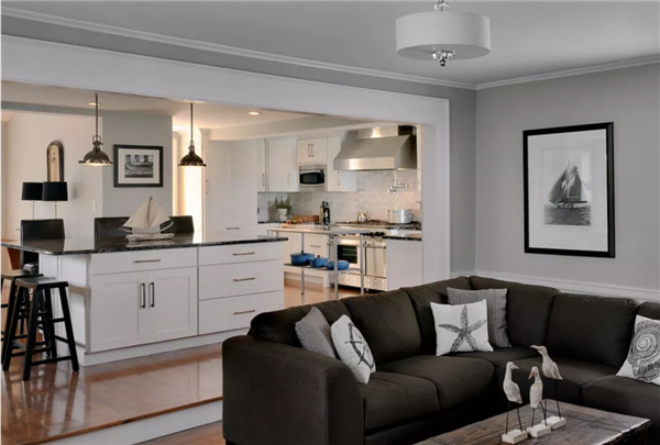 除此之外,将厨房与客厅的功能分区划分好,也很重要。大概有这几类方法。