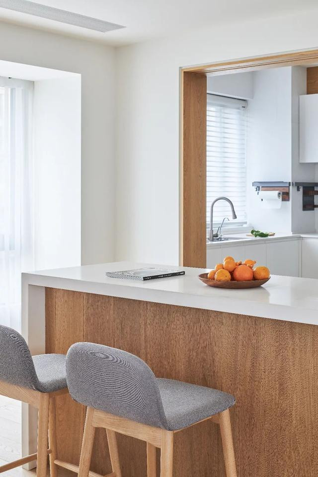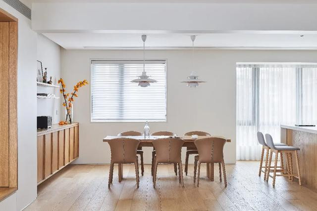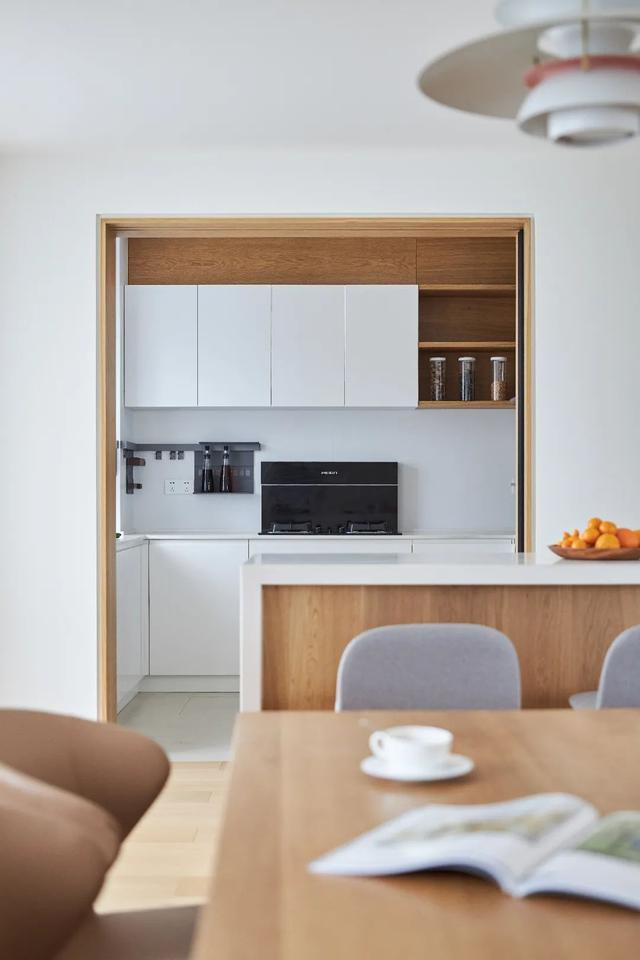 敞开式厨房临近的餐桌,也可随意切换为书桌。