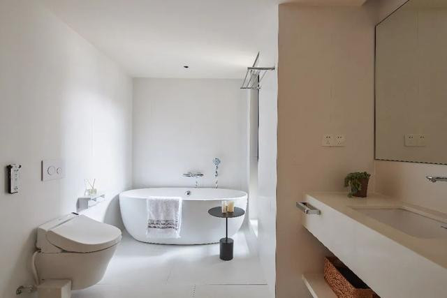 洗浴空间由一尘不染的白构建而成,剩余的颜色是洁净、松弛与自由。
