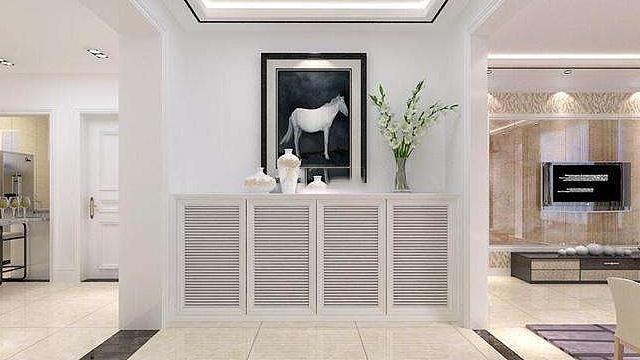 屏风、地毯、装饰画、镜子、花器等这些配件,都能丰富整个玄关空间的第一眼视觉。地毯是划分玄关与客厅的合理手段。古典款式的玄关桌可以彰显此处的典雅感觉,抽屉可以收纳小物品。