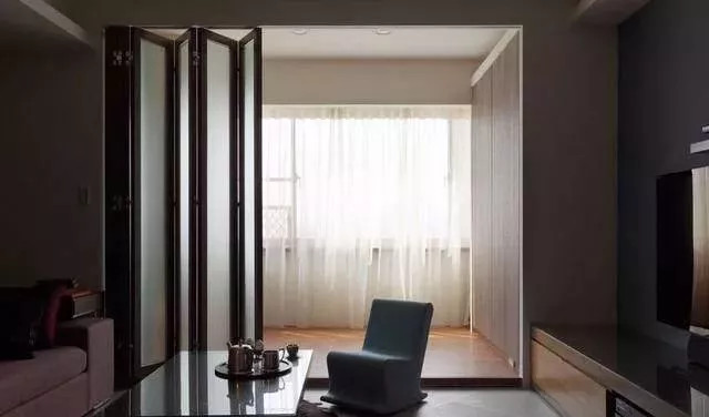 而且平时可以选择把折叠门给完全打开,整个阳台就和客厅连通了起来,让人感觉空间宽敞了不少,看起来也更为舒服。