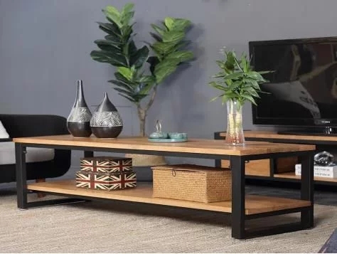(花媚爱家双层实木铁艺茶几)