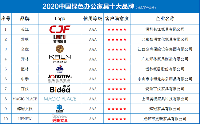 附:2020中国绿色办公家具十大品牌(排名不分先后)