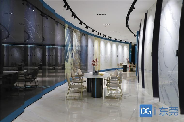 在厚街镇沙隆路46号,东唯岩板(全称:广东东唯新材料有限公司)打造了一座 2000㎡ 的岩板新材料展厅,是东莞市内面积最大的岩板展厅。