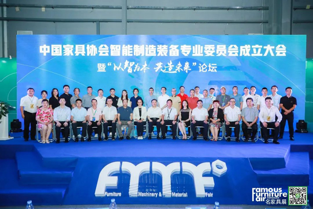 在7月23日广东家具机械材料展现场,还迎来了家居行业的大件事——中国家具协会智能制造装备专业委员会成立大会暨“以智为本 共造未来”主题论坛。