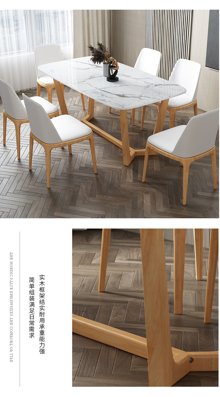 岩板全实木方餐桌现代简约长方形经济小户型北欧家用吃饭桌椅组合;材质:实木;风格:北欧;形状:长方形;型号:ML C666...[View]