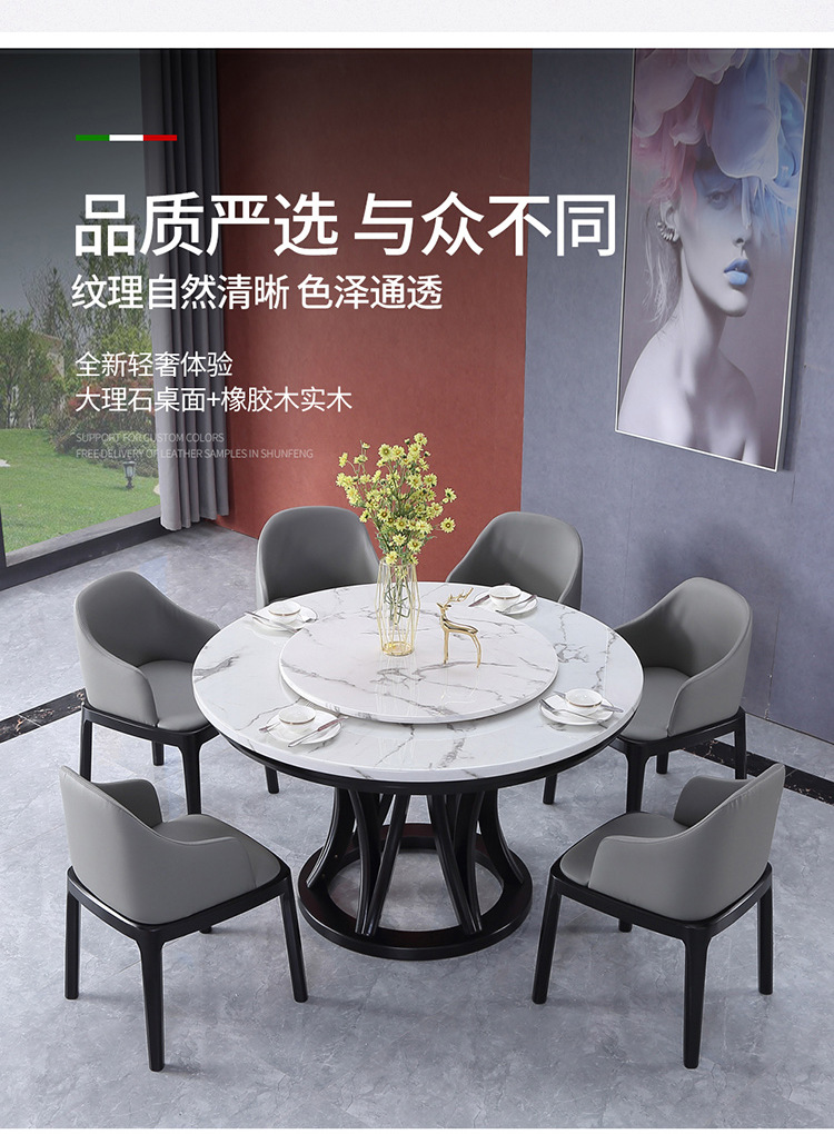 轻奢家具 大理石圆餐桌带转盘 现代简约实木家具