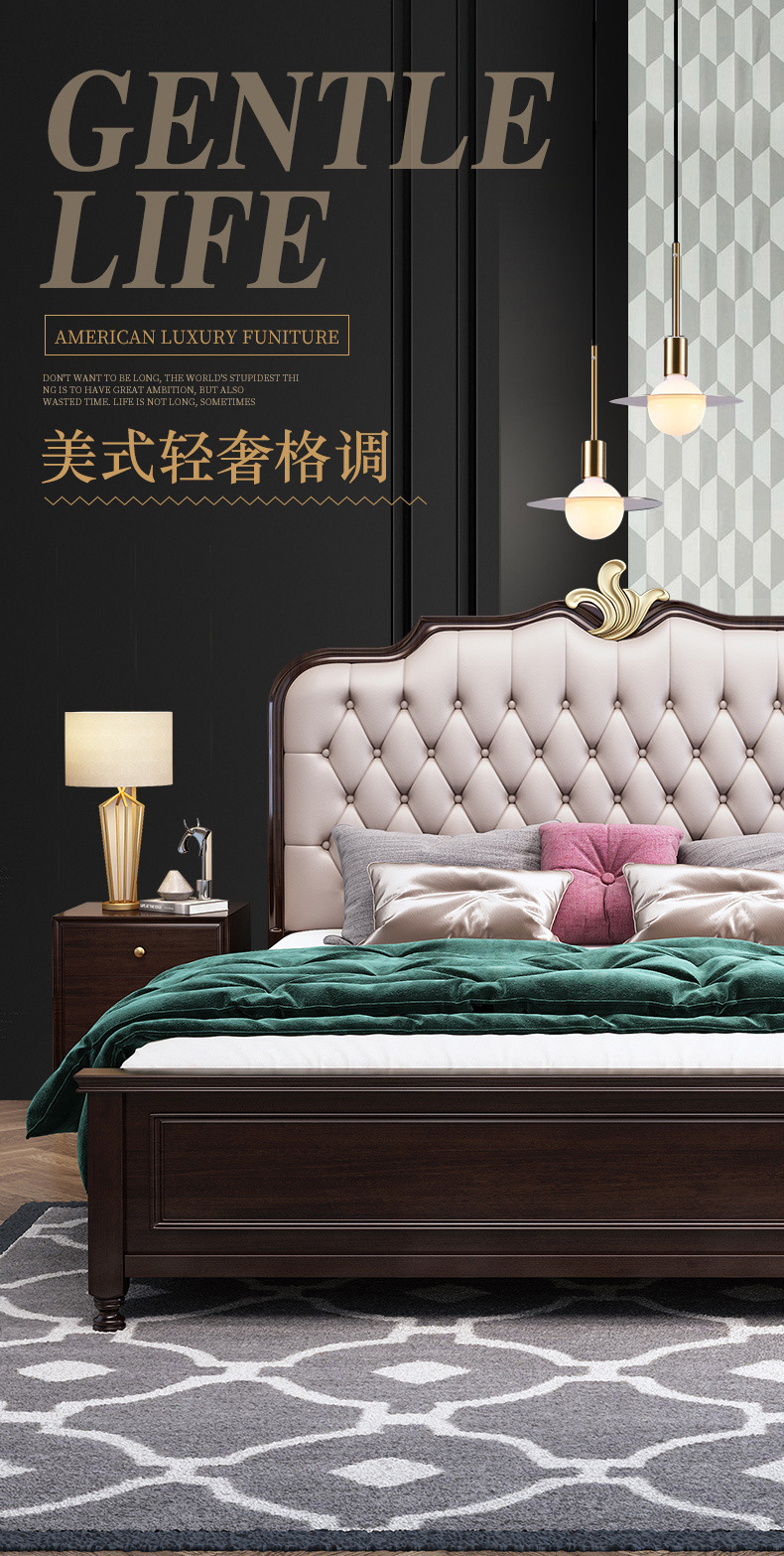 American light luxury solid wood bed 1.8m double bed 1.5m leather soft package wedding bed Simple cherry wood master bedroom furniture; Model: M901 bed; Structure: frame structure; Material: Cherry wood...[View]