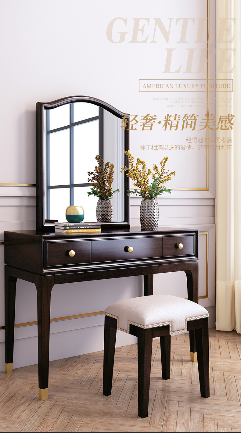 Description: Light luxury American solid wood dressing table Bedroom small apartment mini makeup table Modern simple cherry wood master bedroom furniture; Model: MA8019 dressing table; Material: Solid wood......