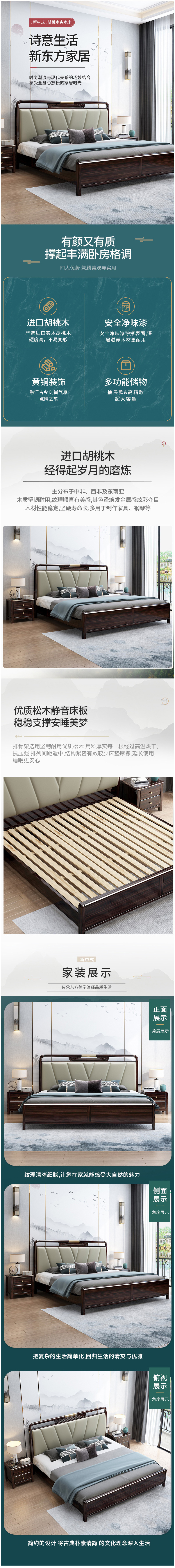 新中式家具 实木床胡桃木双人1.8米1.5m轻奢软靠婚床 2327元/张
