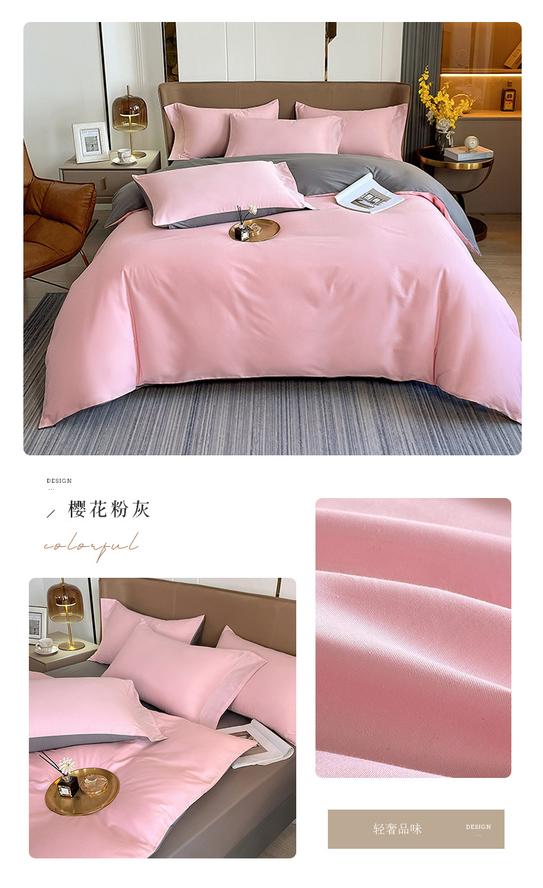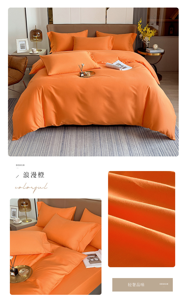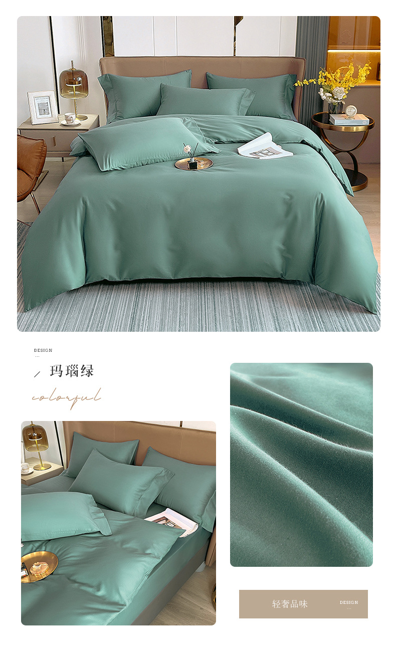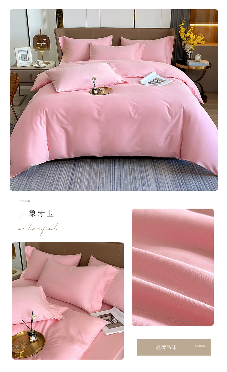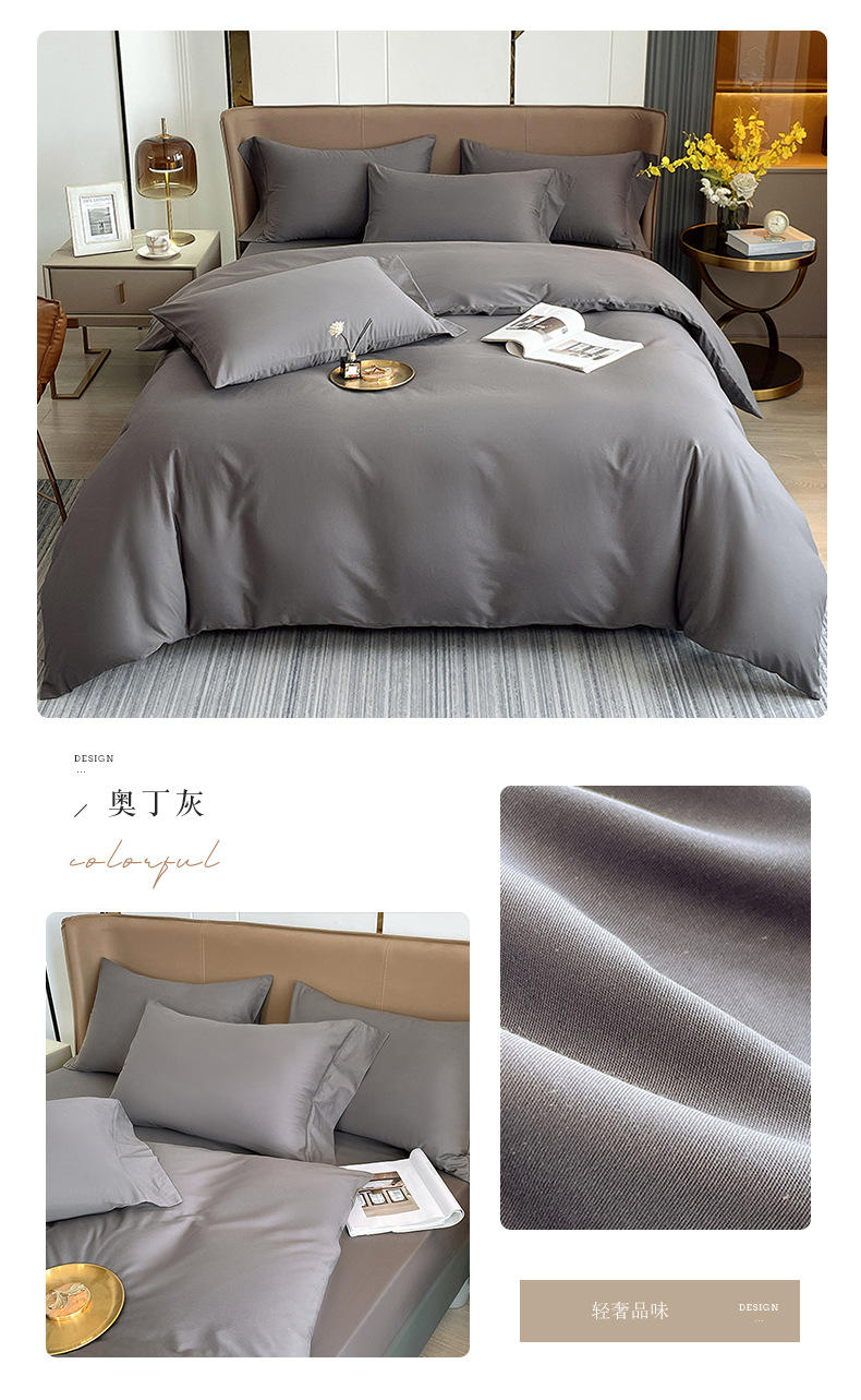 家居家纺 秋冬全棉贡缎四件套 纯色床单被套纯棉床上用品4件套 333元/2套起