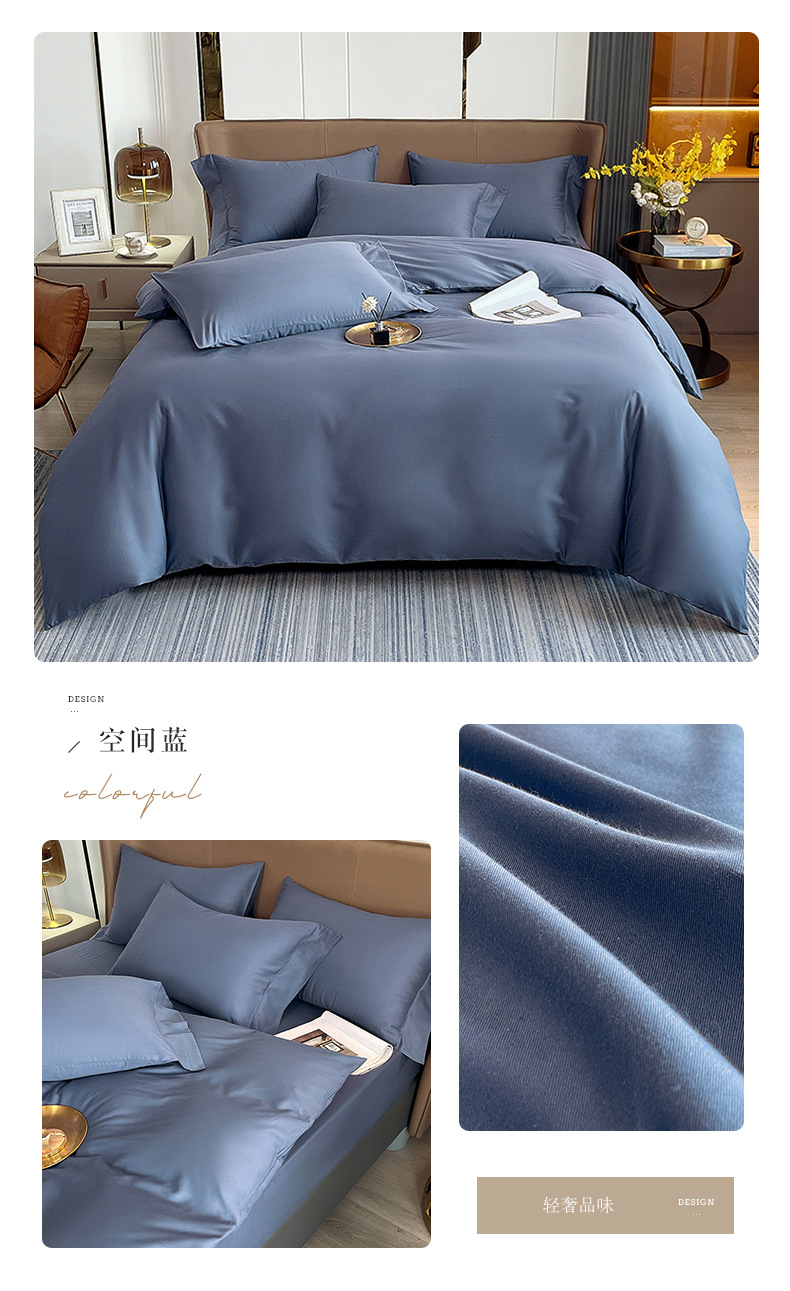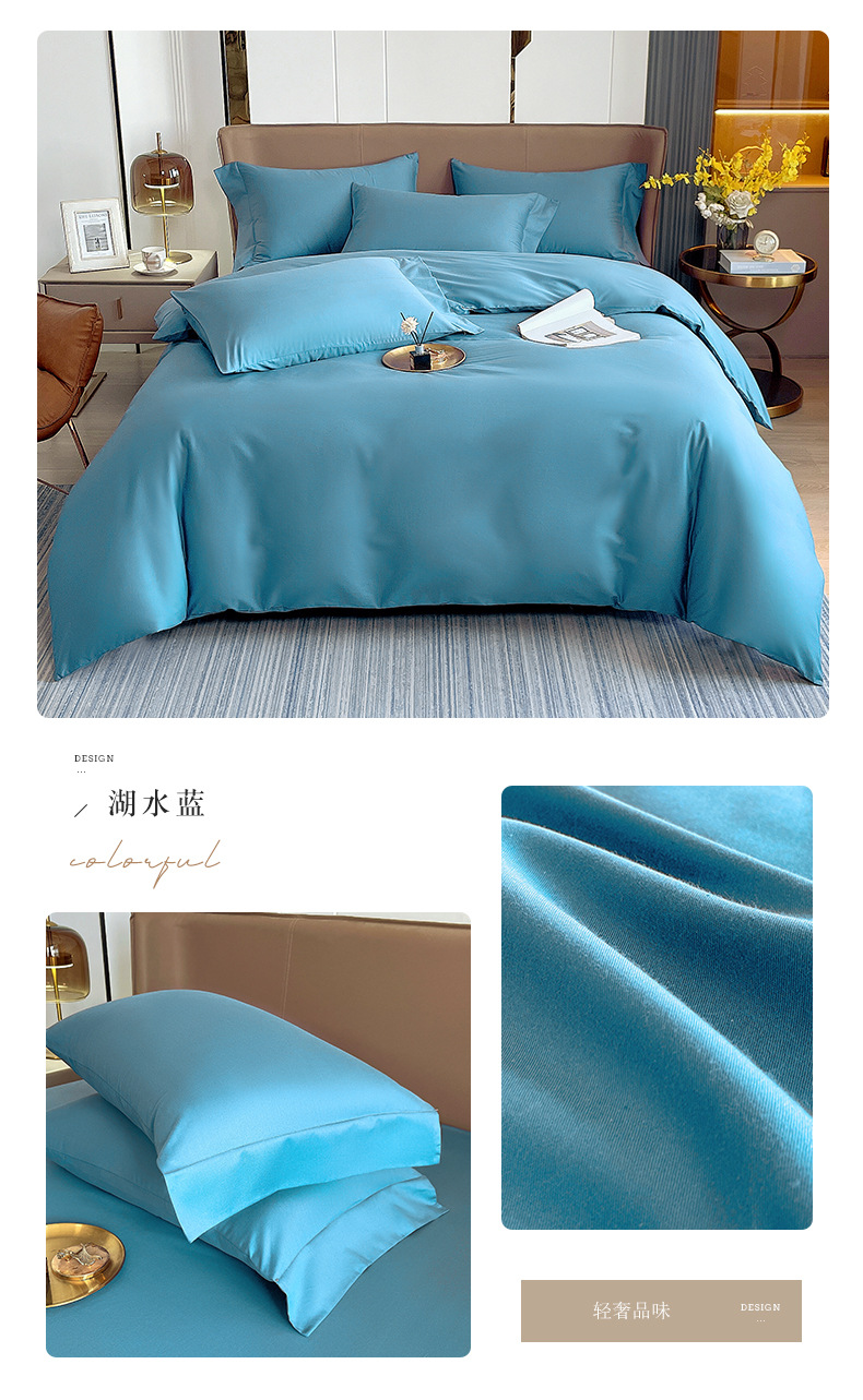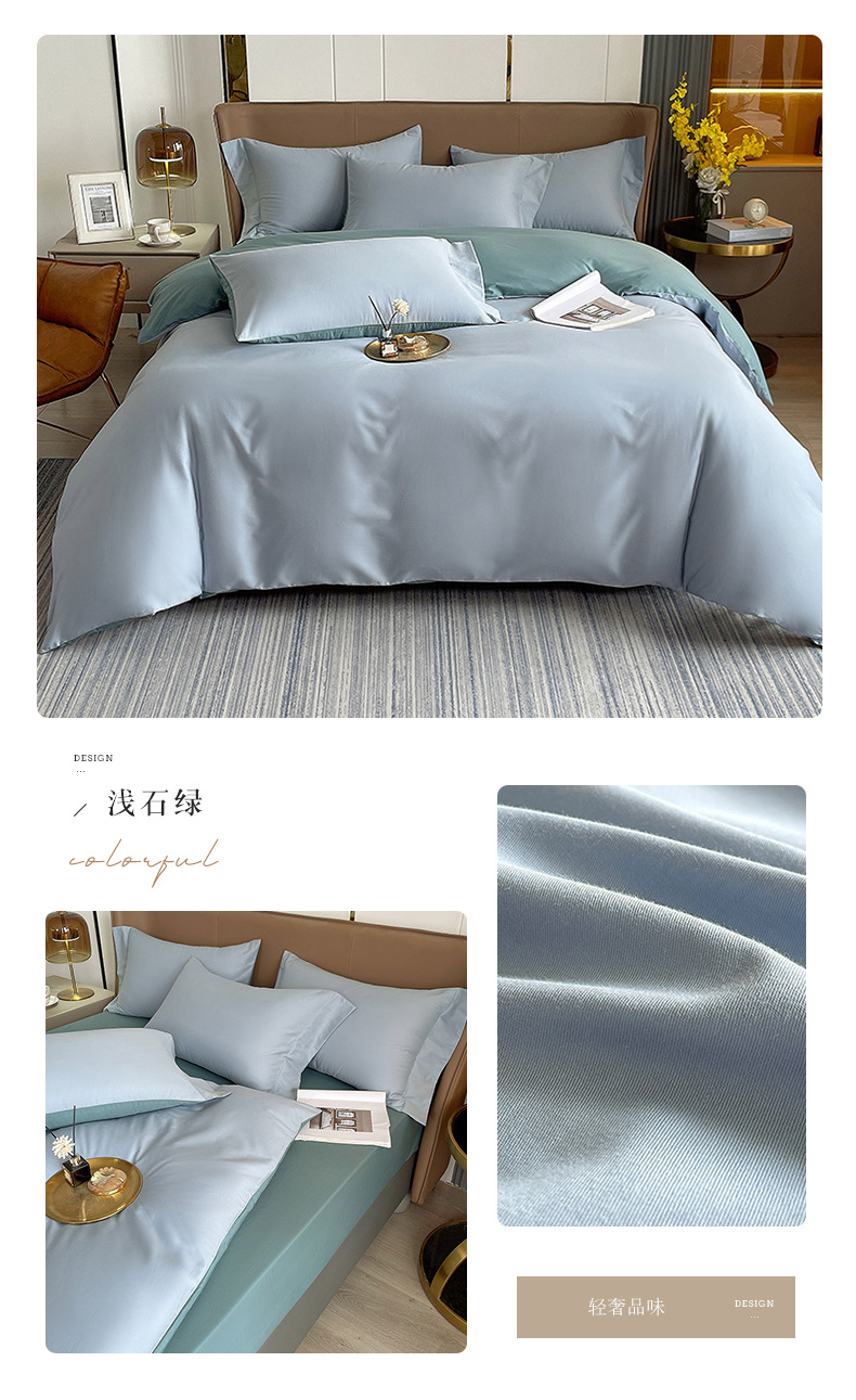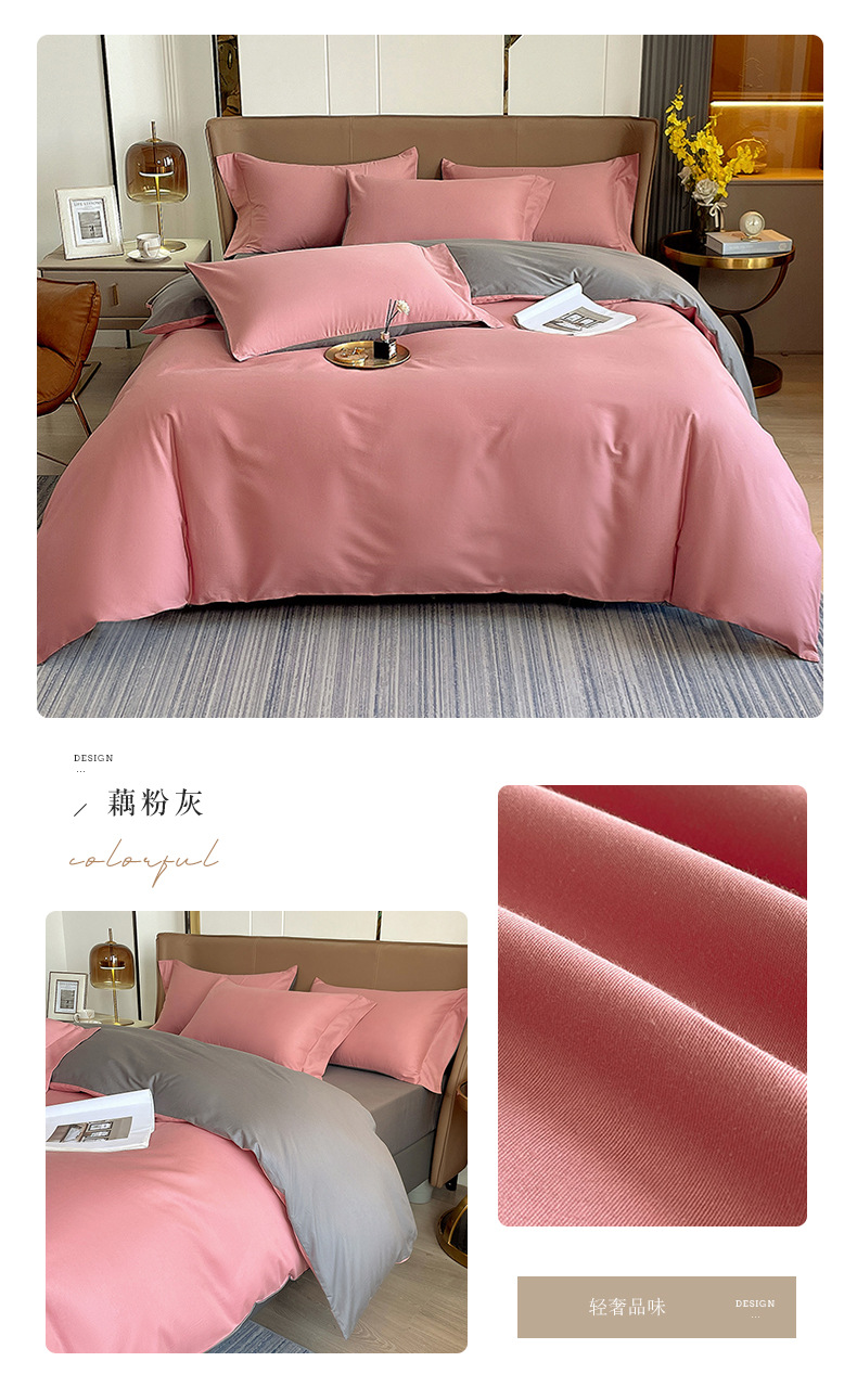 家居家纺 秋冬全棉贡缎四件套 纯色床单被套纯棉床上用品4件套 333元/2套起