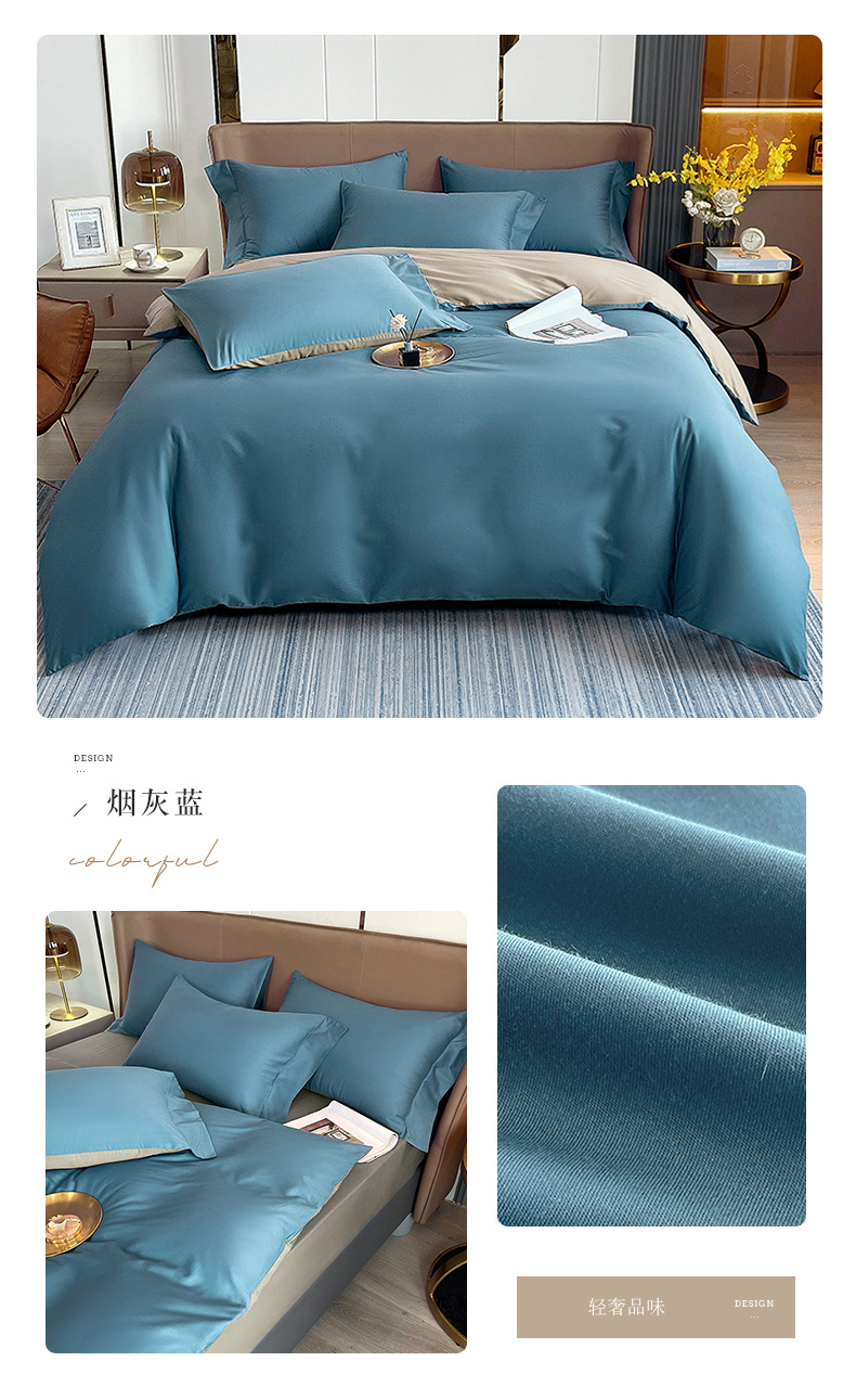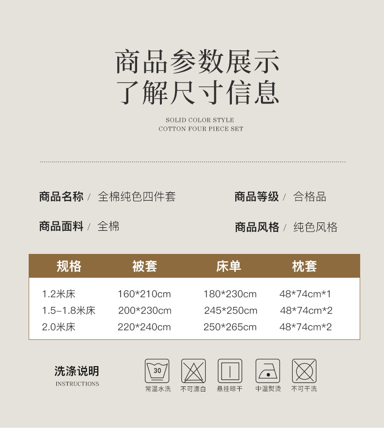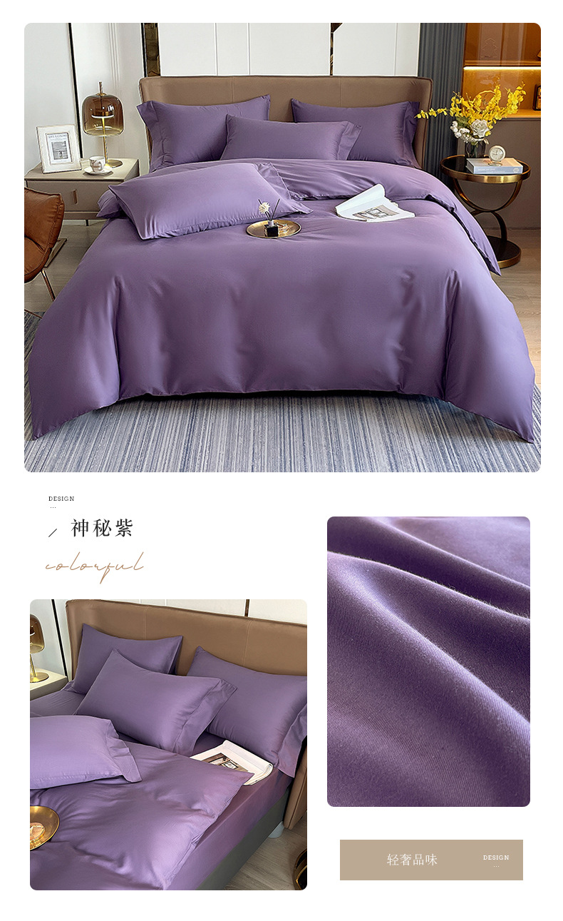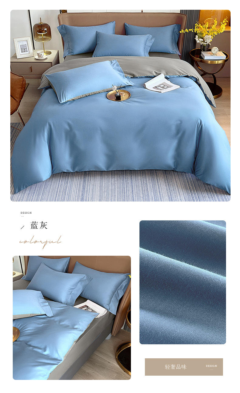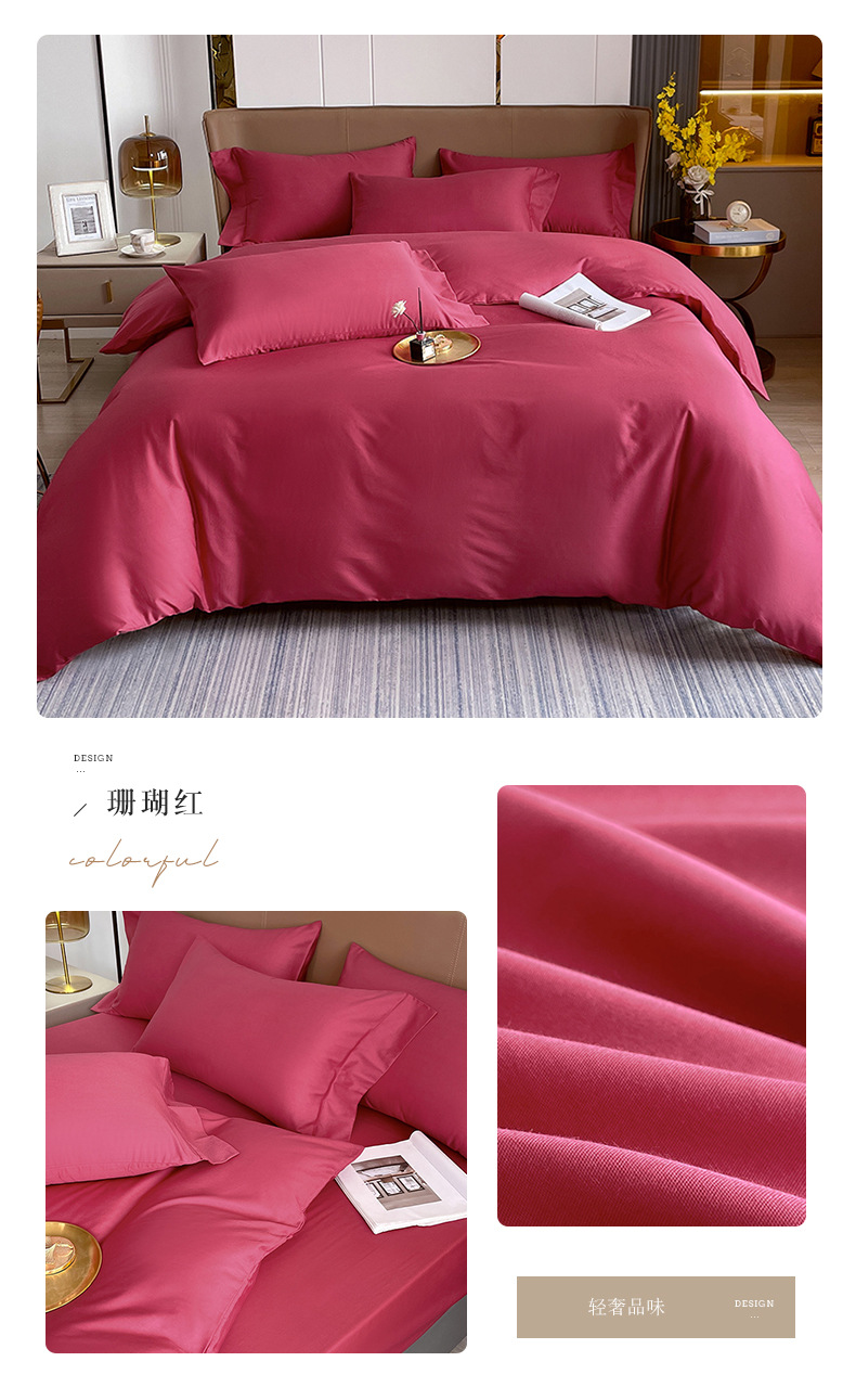 家居家纺 秋冬全棉贡缎四件套 纯色床单被套纯棉床上用品4件套 333元/2套起