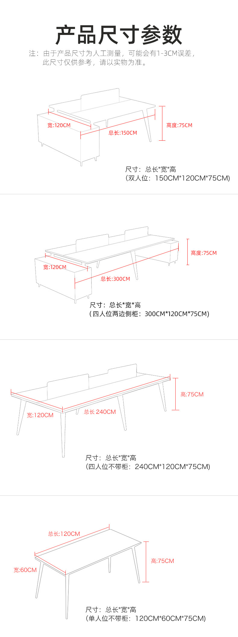 Description: 办公家具现代简约职员屏风隔断办公桌椅组合员工2/4/6人位办公桌;形状:条形;材质:板式;型号:A-30;风格:现代简约......