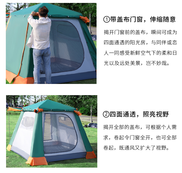 Tent outdoor camping portable automatic 5-8 people folding beach sun shelter camping supplies and equipment; Tent structure: double tent; Style features: Hiking, picnic; Pole: glass fiber pole; Item number :XY2209...[View]