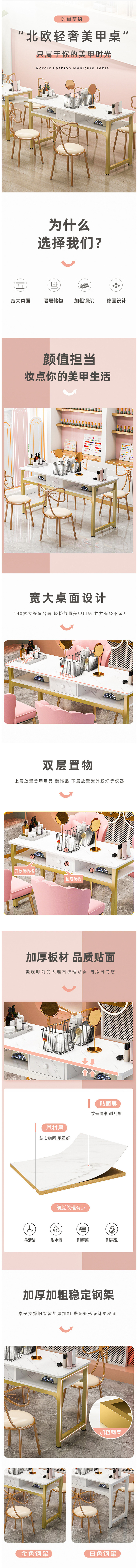 办公家具 美甲桌子椅套装轻奢网红爆款 双人日式仿大理石小台 456元起