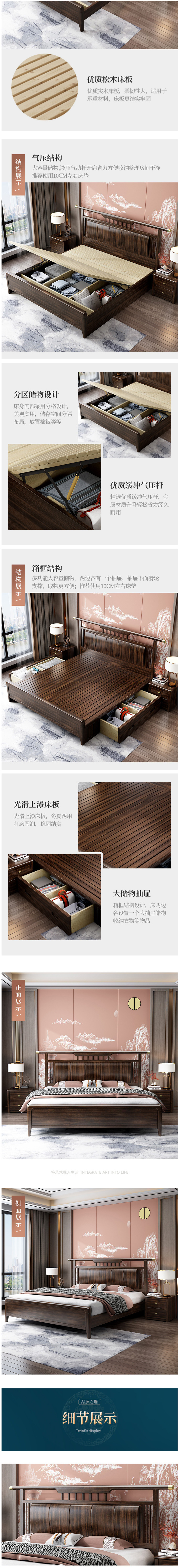Description: 新中式实木床主卧1.8米双人床婚床1.5m单人床中国风乌金木家具;型号:A20#;材质:乌金木;产品类别:高箱;风格:新中式......