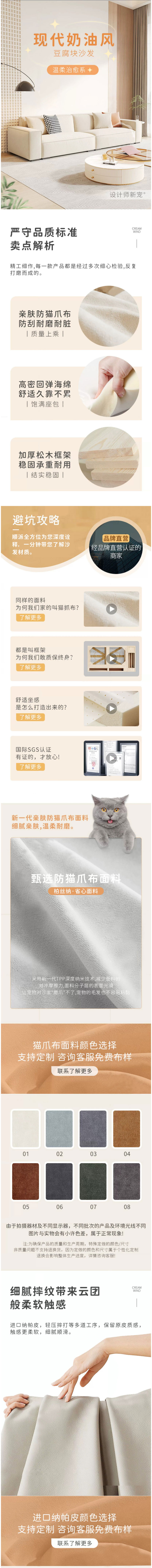 简约家具 意式极简奶油风布艺沙发 现代简约科技布豆腐块沙发 1703元起