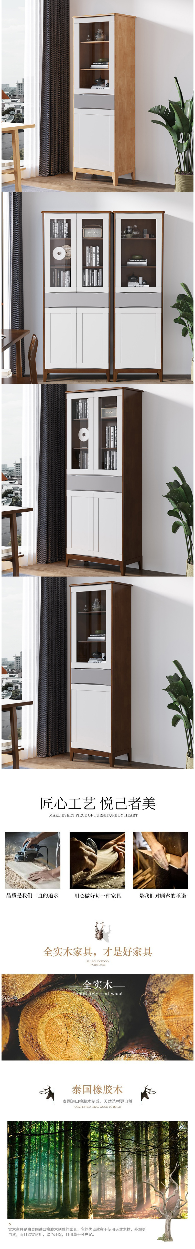 Description: Nordic modern simple study locker Living room with glass door bookcase display cabinet all solid wood bookcase combination, model: 401, material: wood, style: Northern Europe......