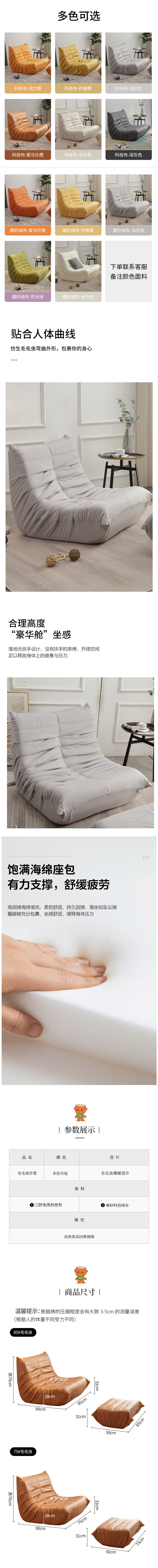 简约家具 毛毛虫懒人沙发 现代简约躺科技布小沙发