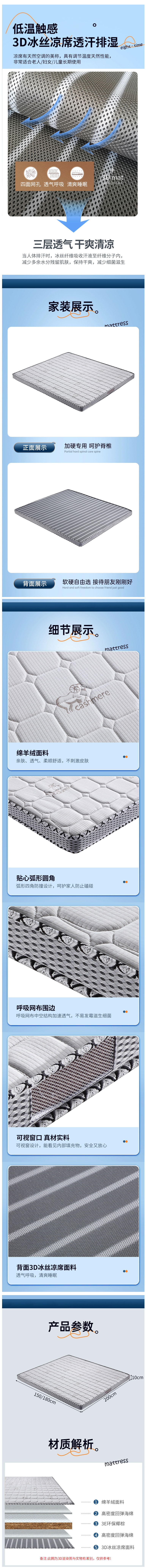 10cm小绵羊棕垫冰丝透气冬夏护脊软硬两用1.5米垫子1.8米床垫;货号:10cm小绵羊棕垫;