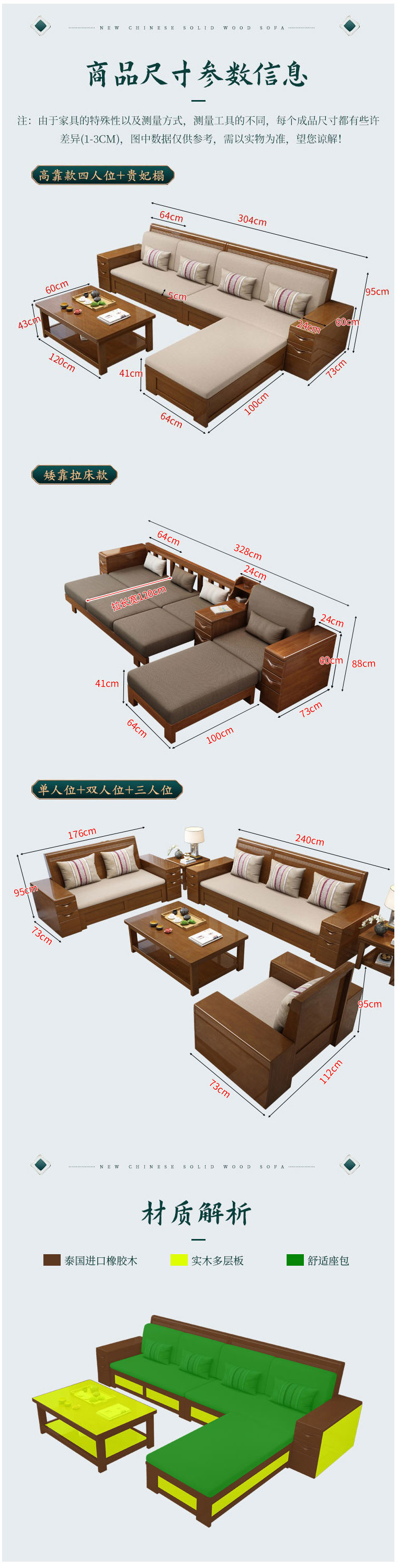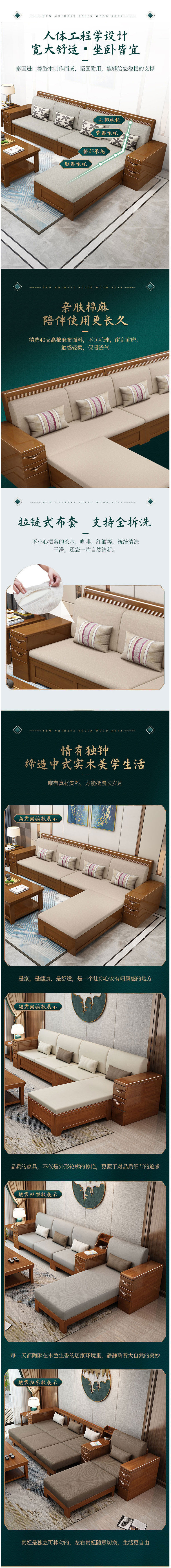 Chinese solid wood sofa combination fabric living room size unit wood multi-functional storage walnut furniture sofa; Wood material: Walnut; Model: HK80 sofa; Internal filler: sponge; Style: Chinese...[View]