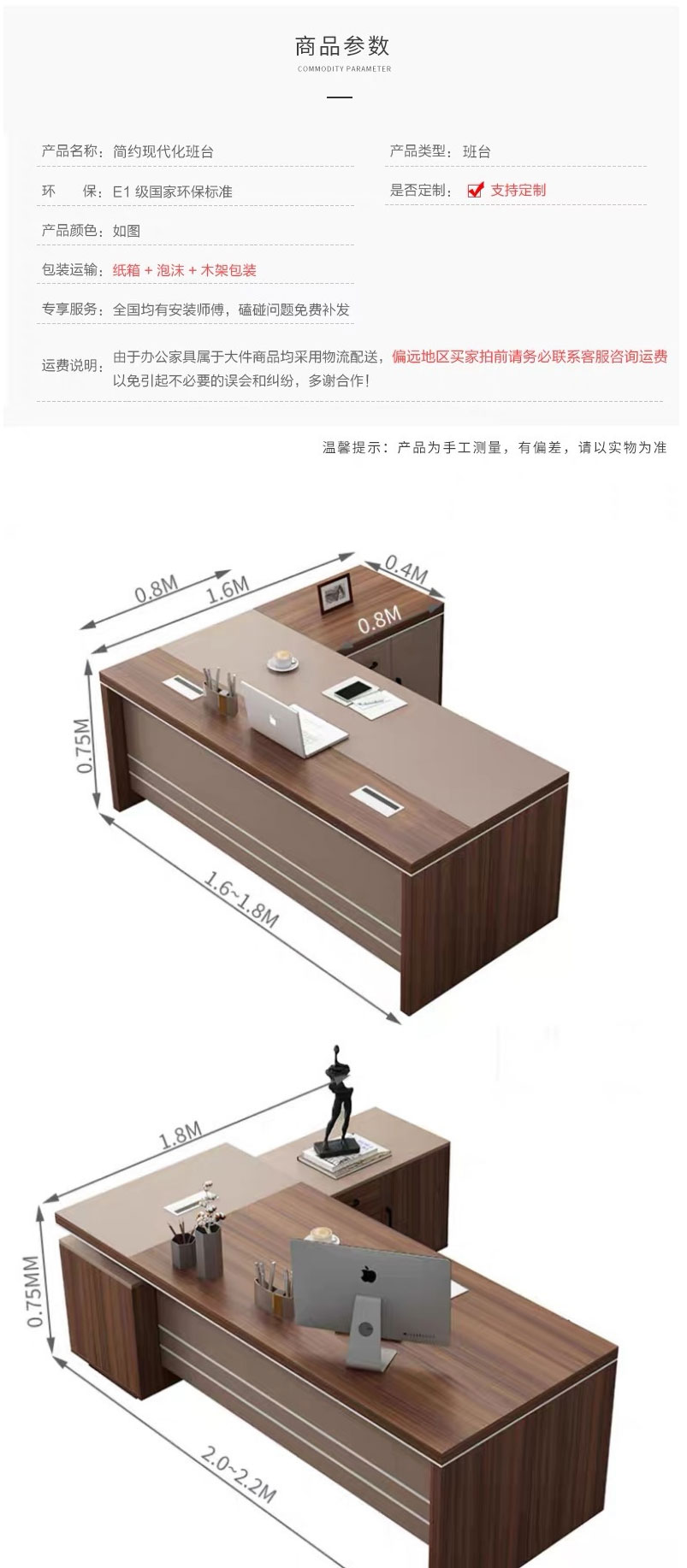 简约风老板桌椅组合中班台主管桌挡板设计师时尚办公桌办公室桌子;形状:条形;材质:板式;风格:现代简约;型号:mh2;封边:pvc;油漆:国际环保漆;五金配件说明:优质五金...[View]