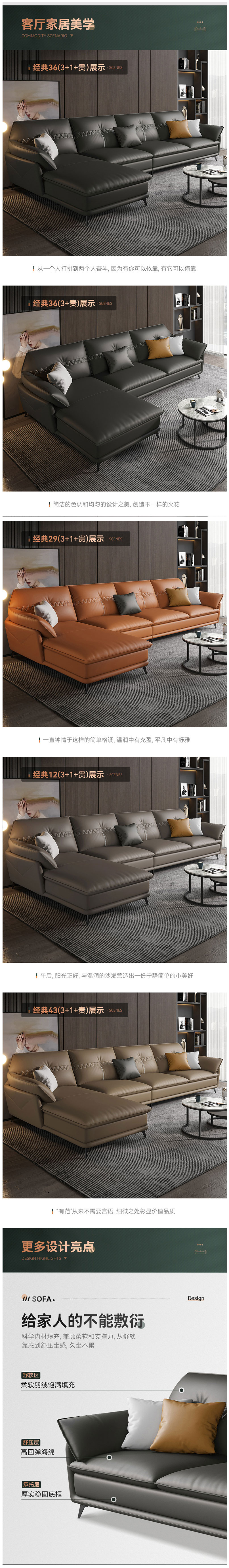 Description: 真皮沙发头层牛皮客厅现代简约轻奢沙发意式极简皮艺沙发;型号:NK-8002;风格:意式极简;沙发组合形式:L形;样式:组合;皮革材质:头层牛皮;皮革饰面范围:接触面皮;内部填充物:海绵;框架:金属骨架......