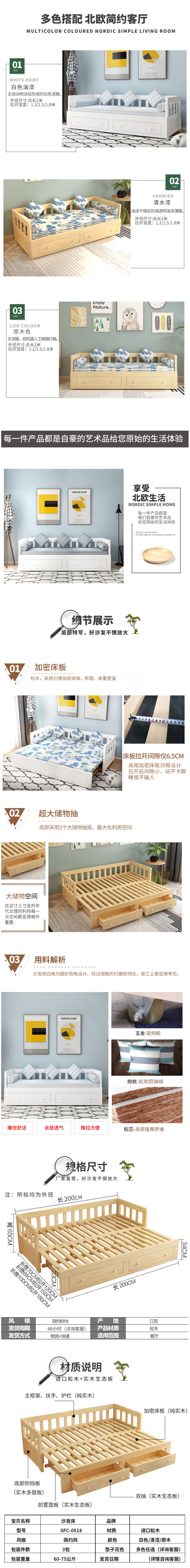 Small apartment can also have large space! This solid wood folding sofa bed is not only your casual seat, but also a warm bed at night. One key pull, instantly transformed into a single bed, sitting and sleeping dual use, a variety of functions.