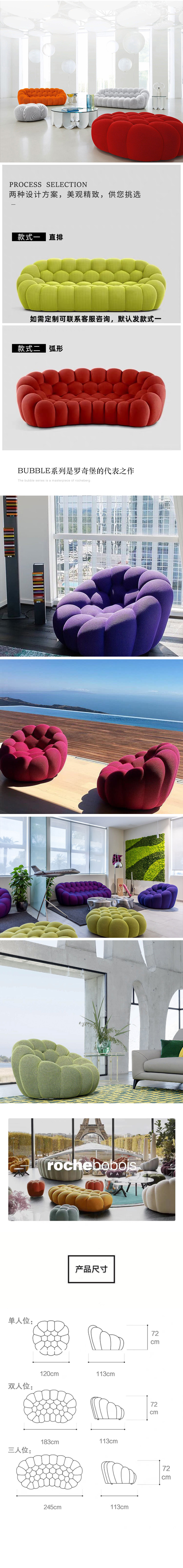 This special-shaped fashion creative fabric living room curved net red designer bubble sofa will bring an unprecedented fashion experience to your living room. Unique curved design, like a bubble light, full of artistic sense. A selection of high-quality fabrics, soft and comfortable to the touch, so that you feel like you are in the clouds. The bubble sofa is not only a piece of furniture, but also a display of your personal taste. Make it the focal point of your living room and share the joy of fashion with your friends.