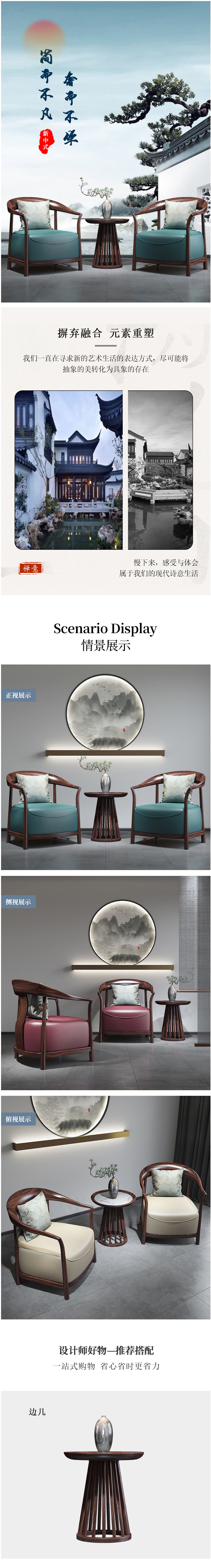 New Chinese single sofa chair modern simple Zen solid wood sofa light luxury leisure negotiation chair leather chair RMB 7072