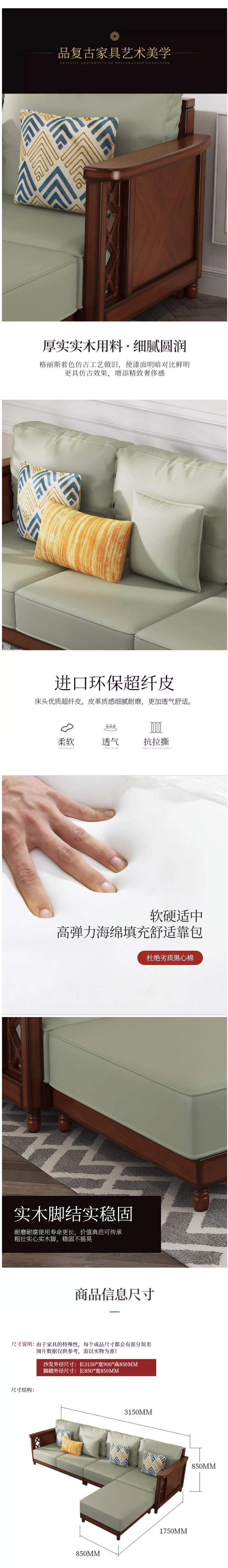 American solid wood sofa retro style modern simple sofa four seats with concubine RMB 8073
